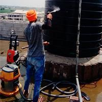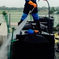 Para a limpeza de reservatórios maiores, utilizamos a técnica de hidrojateamento, que remove toda a sujeira com extrema higiene.